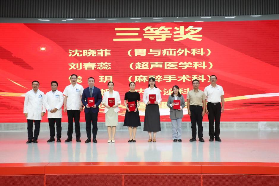 经过激烈角逐和评委现场打分,胸外科周楚荣获一等奖,神经内科张清秀、心血管内科乔帅华获二等奖,胃与疝外科沈晓菲、超声医学科刘春蕊、麻醉手术科钱玥、内分泌科杨帆、重症医学科郝迎迎获三等奖。