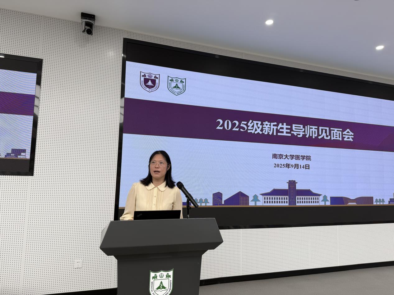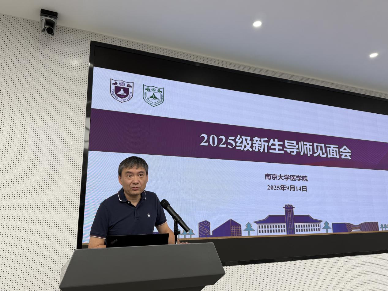为落实立德树人根本任务,深化实施“奋进行动”本科拔尖创新人才培养行动方案,推进三全育人,推进高水平医学创新人才培养体系建设,引导学生更好地适应大学生活,9月14日下午,17av 在鼓楼校区基础医学科研中心报告厅成功举办了2025级本科新生导师见面会。17av 党委书记沈苏南、党委副书记王阿妮和新生导师出席。会议由王阿妮主持。