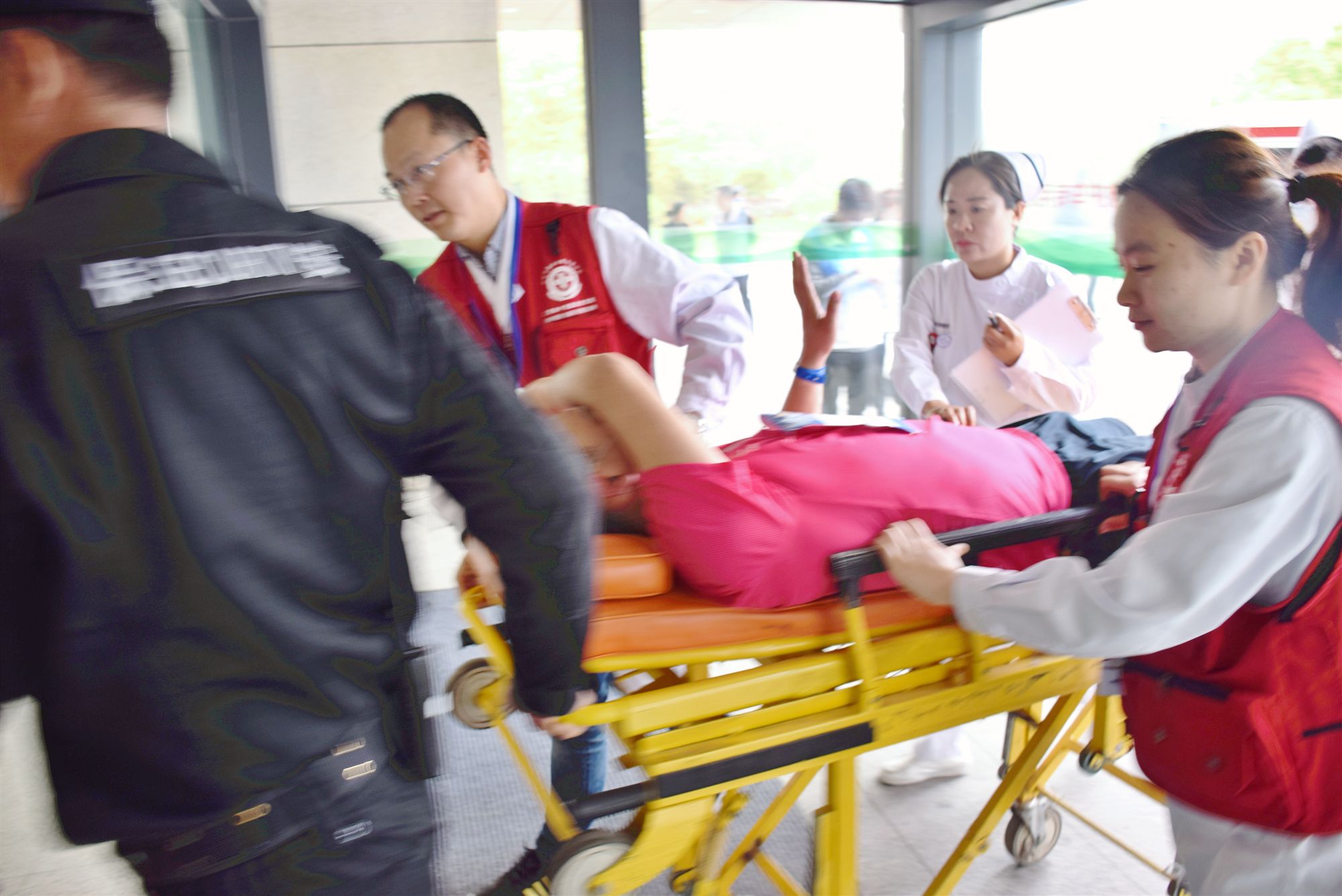 包括急救备班人员在内,医院共计80余名医护人员参与本次保障,现场救治点与院区全程联动,共计帮助200余名选手实施救治。集“现场救治—转移运输—院内急救”为一体的大急救体系,使得发生意外伤害的选手获得了及时有效的医疗救治,截止中午12点,所有受伤选手情况平稳。