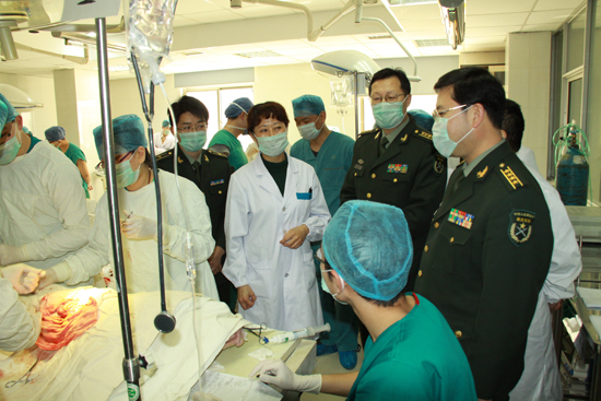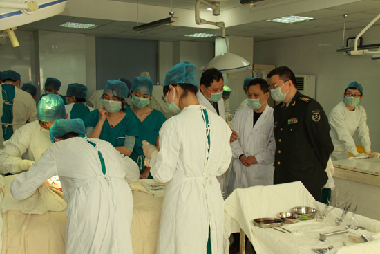 临床医学2009级的学生进行动物外科手术教学活动。近日,医院史兆荣院长、王与荣副院长、医务部刘玉秀副主任、郑均副主任来到现场,观摩了动物外科手术教学。本次教学内容包括腹壁切开、小肠部分切除、胃肠吻合、阑尾切除、脾切除、清创缝合等六个类型的常规手术,每名学生在带教老师的指导下轮流担任主刀医生、第一助手、麻醉医师和器械护士的角色。经过两个月的手术基本功训练,和近一周的动物手术操作实践,同学们娴熟的手术操作,镇静自如的神情,给院领导留下了深刻的印象。