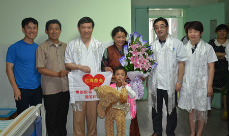 三病区就诊的5岁藏族女孩伦珠曲央,祝愿她早日康复迎接美丽人生,并向倾力救治小伦珠的医护人员和热心人士表达诚挚感谢。