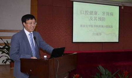 胡勤刚院长首先向来宾介绍医院在医教研防等方面的情况。闫福华副院长、葛久禹教授、童昕主任医师分别做了三个专题讲座:《牙周病与全身疾病的关系》、《牙体牙髓疾病的诊治》、《人类的第三副牙齿—种植牙》。讲座深入浅出,直观形象,获得大家的一致好评。