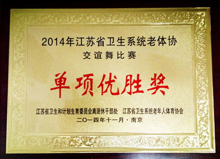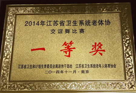 退休协会舞蹈队张红等同志在江苏省卫生系统老体协举办的体育舞蹈大赛中获团体一等奖和两个单项优胜奖。