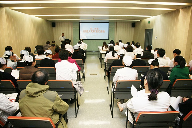 1月9日下午,2013年度人文科室创建展示会在科学会堂2号学术报告厅举行。院领导、职能处室负责人、临床医务人员代表以及申报科室代表参加了会议,会议由周书记主持。