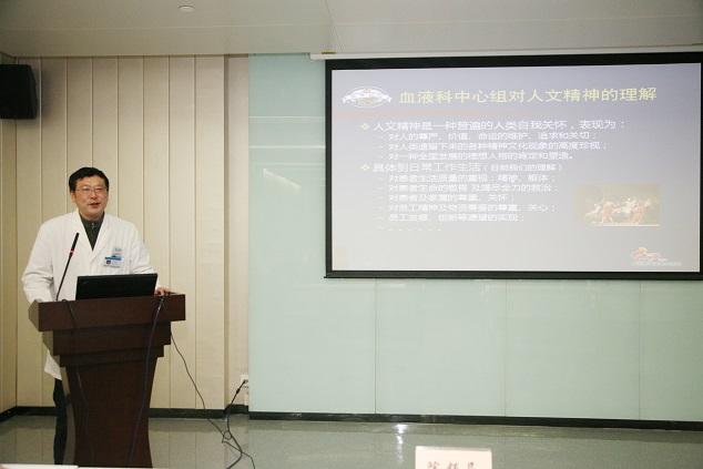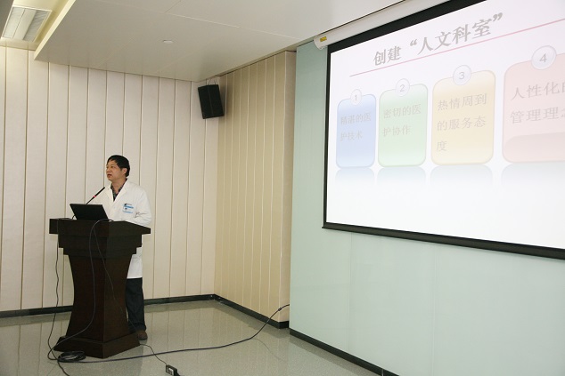周书记总结了2013年度创建人文科室的基本情况与工作重点。年初,全院共有16个科室申报参与人文科室评选,对照标准筛选和推荐,7个科室参加了本次创建汇报会,它们分别是:肿瘤科、干保307病区、血液科、麻醉手术科、骨科11D病区、计划生育709病区和中医科。