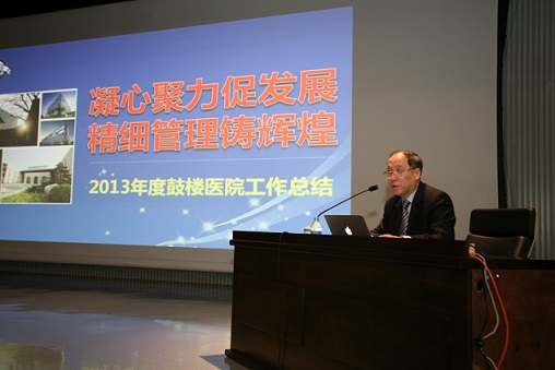 1月22日下午,鼓楼医院2013年度工作总结表彰大会在科学会堂召开。南京市政府副市长胡万进、南京市卫生局局长孙家兴、17av 党委书记韩晓冬、全院干部职工近400人参加。 丁义涛院长首先就医院2013年度工作进行了总结。他指出,在过去的一年里,医院以精细化管理夯实了医院发展的新平台,进一步推动人文医院建设向科室深入,有力地强化了国家级优质医院的建设。2013年,医院南扩新大楼住院部和仙林鼓楼医院的正式启用为医院的发展带来了新的机遇和挑战。全院职工凝心聚力,充分发挥鼓医人特有的闯劲、干劲、巧劲和韧劲,化挑战为机遇,狠抓党风廉政建设,持续加强医疗质量安全管理,全面提升医疗服务水平,有力推进科研教学工作,科学提升医院管理水平,医院各项工作都登上新的台阶。在总结成绩的同时,丁院长梳理了医院当前存在的一些不足之处。如医疗质量仍有薄弱环节、就医流程有待进一步优化、成本控制有待进一步加强、人才学科建设不够平衡、精细化管理有待进一步加强等。