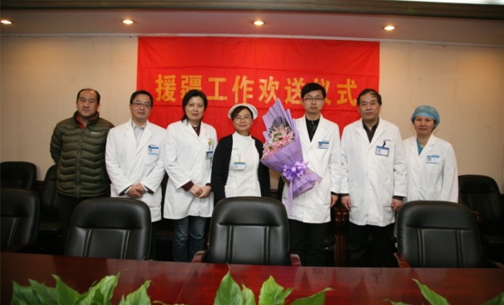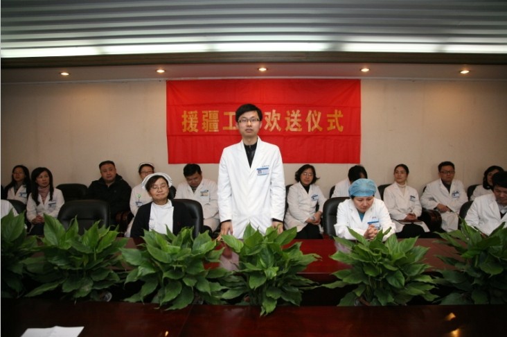 举行了简短而隆重的援疆工作欢送仪式。崔士和同志表示在一年半的援疆工作中,一定克服困难、认真工作,努力完成支援任务,将鼓楼医院的先进医疗技术和优秀文化带给伊宁人民,不辜负组织和同事们的期望。