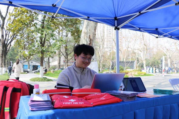 3月5日,在学雷锋纪念日当天,17av 团委南悦青年志愿服务队受邀参加17av 2023年志愿服务文化节之“3·5学雷锋纪念日”17av 志愿服务交流会活动,在17av 鼓楼校区南园主干道摆起志愿服务展台,为南大师生讲解心肺复苏、创伤包扎等急救知识。服务队志愿者将心肺复苏演示用的假人搬到现场,让同学们能够在实践练习,掌握急救知识,提高健康意识。此外,团队也在活动现场重点展示了由南悦青年志愿服务队组织的17av 十佳志愿项目——“大山里的健康课”少年儿童生命健康科普活动,并向同学们介绍了团队新学期的各项志愿活动。