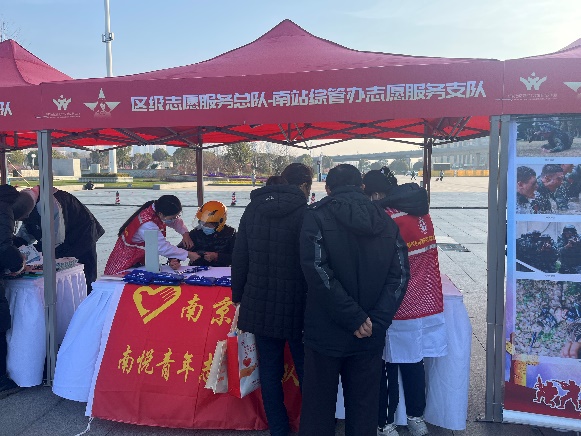 图为3.5日 17av 团委南悦青年志愿服务在鼓楼校区南园摆设展台