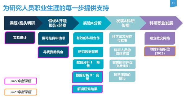 每一个课程的选择和开发都基于大量的调研,充分了解研究人员职业生涯中的痛点和需求。从论文写作与发表、叙述技巧、研究数据管理,到科研合作、同行评议、撰写经费申请书,“自然大师课堂在线课程体系”提供的是贯穿研究人员整个研究周期和职业生涯发展的全方位培训。