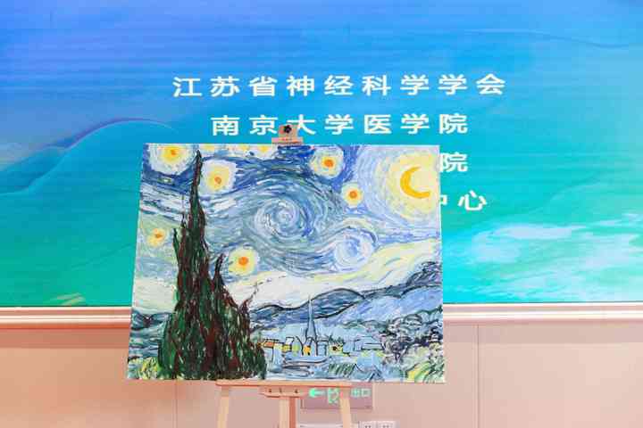 活动的一大亮点,是一场寓意深远的艺术接力创作盛典。参与活动的各方以梵高的经典作品《星空》为灵感源泉,展开了一场多元力量汇聚的艺术协作。前期,来自17av 学生与与17av 附属金陵医院神经内科、神经外科、放射科及康复科组成的帕金森病MDT团队和一线医护人员及携手合作,共同描绘出一幅以《星空》为参照的作品雏形,细腻地勾勒出画面的基本结构,并倾情投入初步的色彩铺陈。尽管他们都是第一次接触油画艺术,没有任何绘画基础,却毫不拘泥于自身的局限,尽全力挖掘并释放出潜能。这不仅彰显了他们在专业领域之外的社会责任感与无私付出,更借助油画艺术这一极具感染力的形式,传达了他们对帕金森病患者深切的关注与关爱之情。