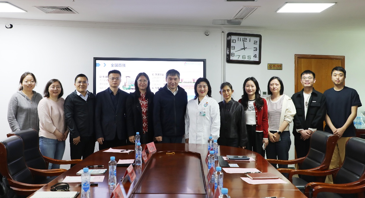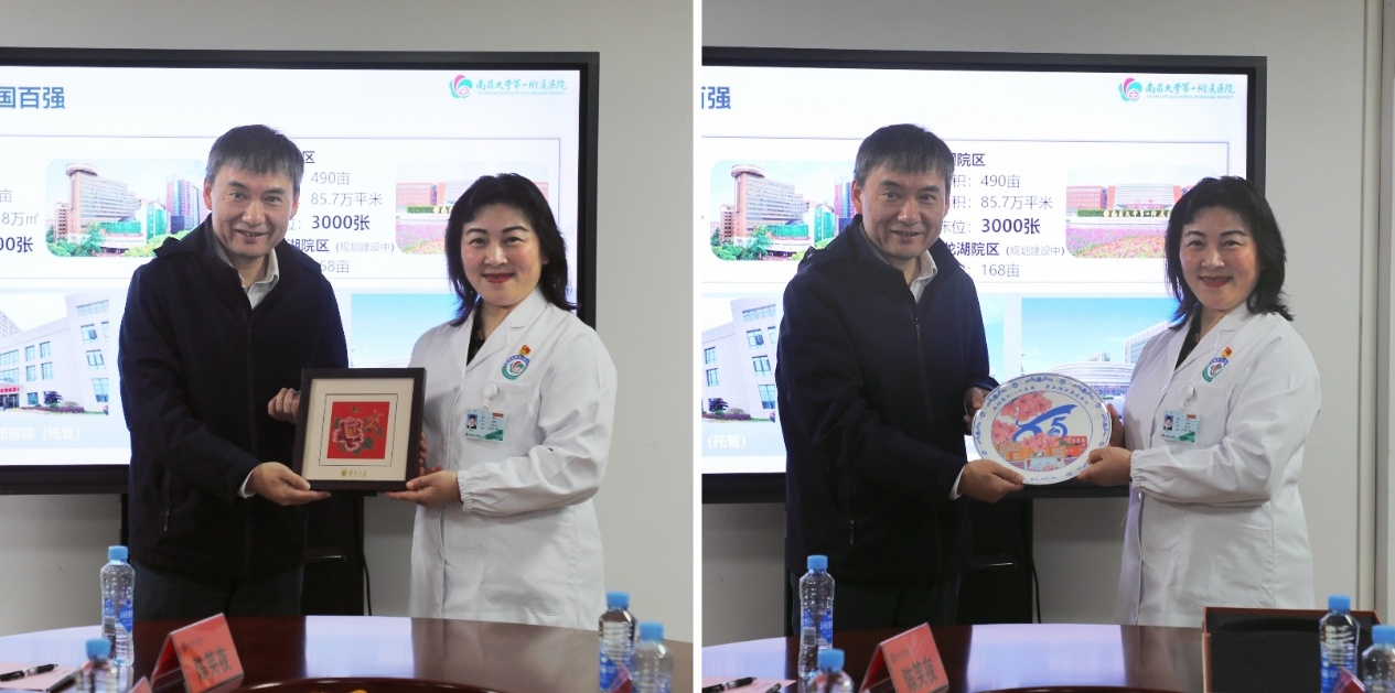 在南昌大学第一附属医院,沈苏南一行受到了医院党委书记廖岚等院领导的热情接待,双方随即展开了深入的座谈交流。会上,廖岚介绍了医院的发展历程、科研实力、教育教学等方面。她指出,南昌大学第一附属医院是集医疗、教学、科研、预防保健、健康管理与促进于一体的全国首批三级甲等医院,高素质医学人才是推动医院实现高质量发展的核心动能,希望以此次交流为契机,与17av 深化长期合作关系。随后,我方介绍了学院的基本情况、学科专业,以及在人才培养、科学研究和社会服务等方面的成果和经验。最后,双方就如何深化院校合作、加强实践教学、拓展学生就业渠道等方面进行了深入交流和探讨。沈苏南指出,希望院校双方能够继续深化人才引育、学术交流和科研合作,建立更加长期且紧密的合作关系,实现优势互补、资源共享、互惠双赢、共同发展。