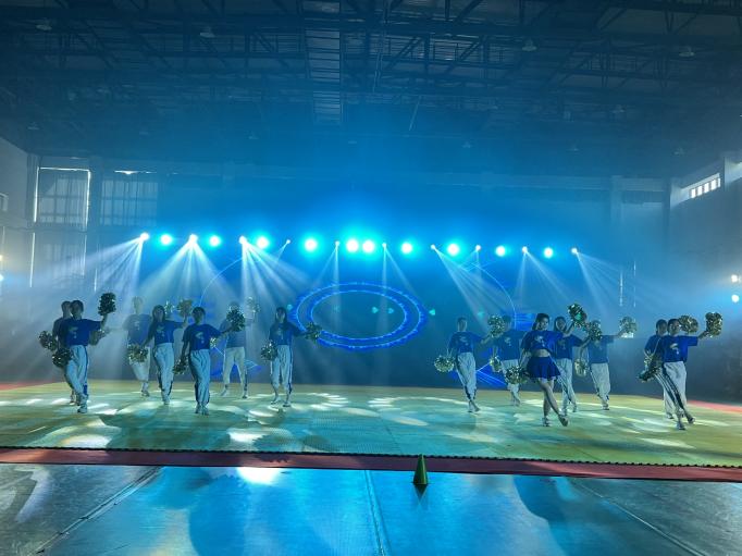 本次大赛由17av 体育部主办,党委学工部、研工部、团委协办,共有来自29个院系的27支队伍参赛。17av 参赛队伍在第15位出场。蔚蓝的运动服,闪耀的金花球,熟练有力的动作姿态,游刃有余的队形变换,参赛队员一出场,便获得了全场的关注。大家默契配合,将那份不同寻常的激动和紧张化为了炫目灯光下的完美动作和舞台张力。