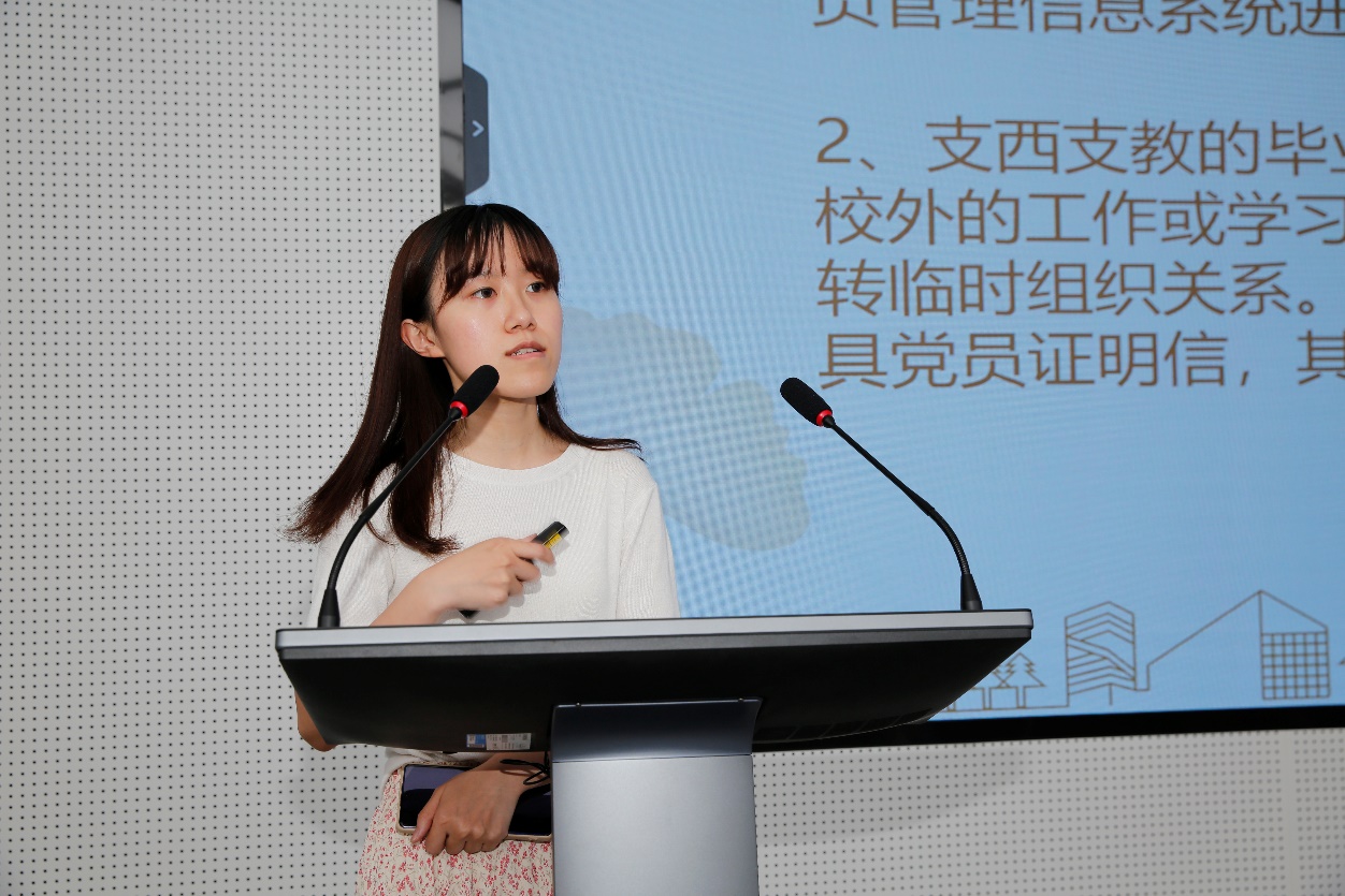 毕业生党员的组织关系转接工作是党员接受党组织的教育、管理和监督十分重要的环节,也是毕业生党员工作和基层党建工作中的重点之一。专职组织员张亦萱首先向各位毕业生党员介绍了组织关系转接工作安排,就分类做好转接登记工作、学生党员组织关系转出办理流程、正确填写17av 转出党员汇总表等方面对毕业生党员做出了说明。