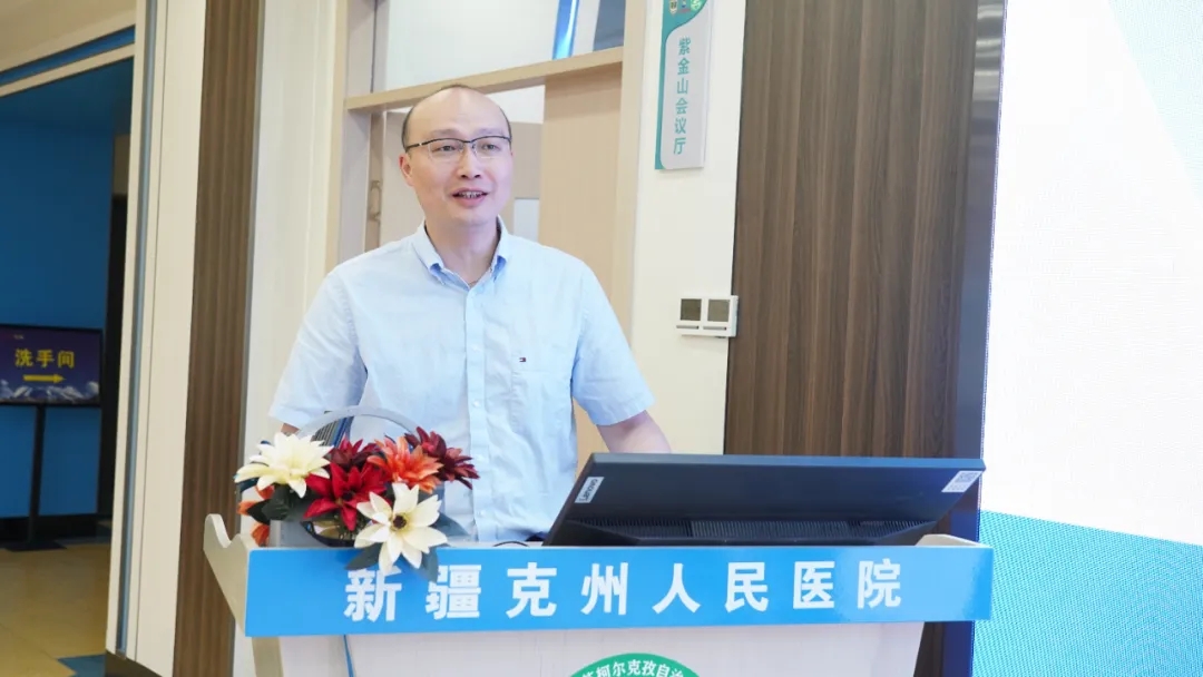 克州人民医院党委书记艾斯卡尔·白西尔首先欢迎一行到来。他表示,克州人民医院在江苏对口支援下实现了质的飞跃,带领医院在医院管理、学科建设、科研教学等方面取得了突出成效,希望17av 能常指导、常交流。