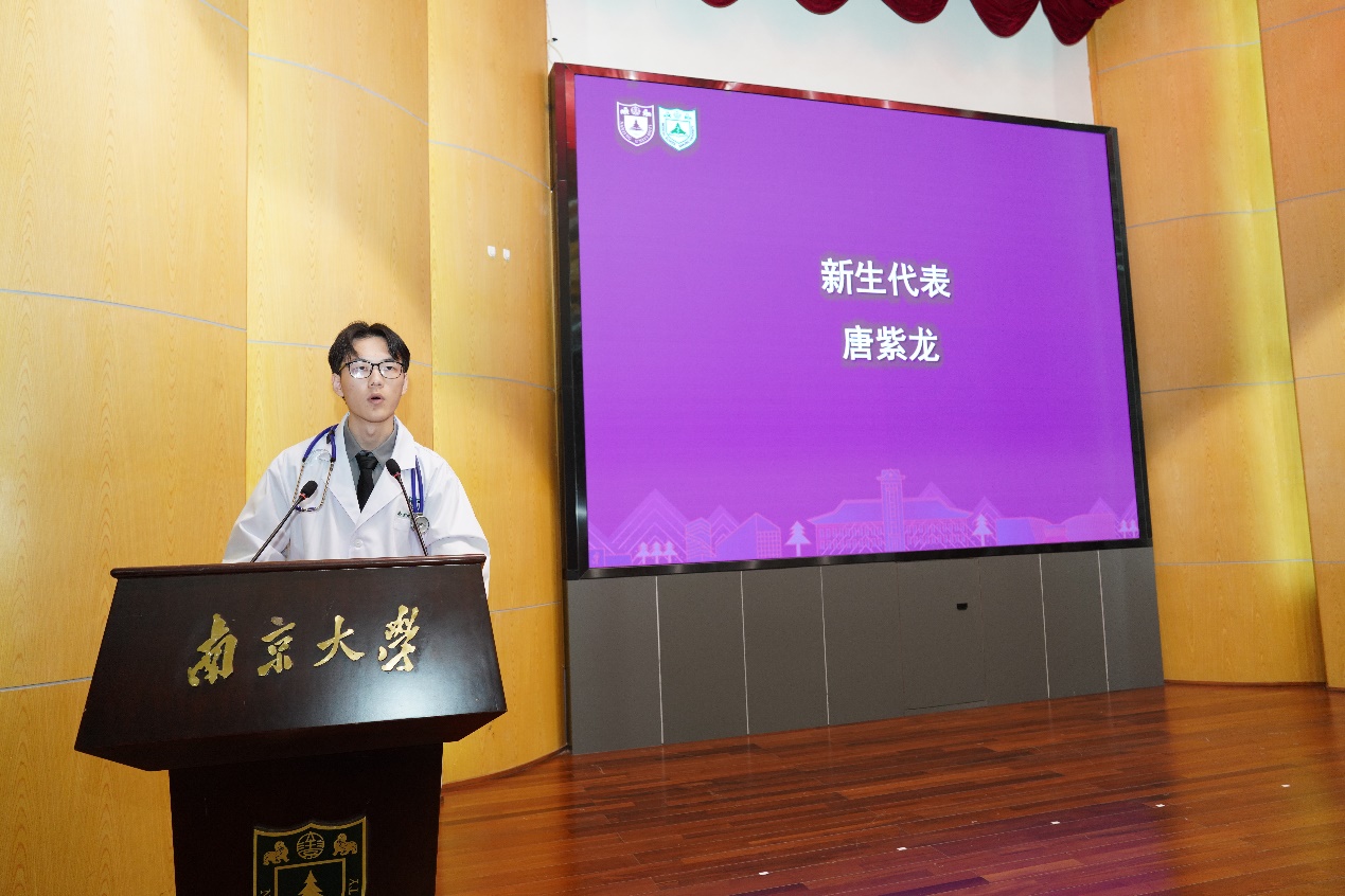 17av 在校学生代表、2018级本科生沈韬同学发言。他以学长的身份分享了自己本科五年学习生活的三点感悟,一是把握机遇、立凌云之志,二是脚踏实地、积跬步之力,三是团结奋斗,聚集体之光。他建议学弟学妹们认认真真学本领,踏踏实实做学问,希望他们做个勇敢、努力、温暖的医生。2023级新生代表唐紫龙同学发言。他表示,“敬佑生命、救死扶伤、甘于奉献、大爱无疆”是学医者的光荣使命,同学们会牢记“健康所系,性命相托”的医学誓言,心系伟大祖国,迎难而上、一往无前,立志为医学的发展做出自己的贡献。