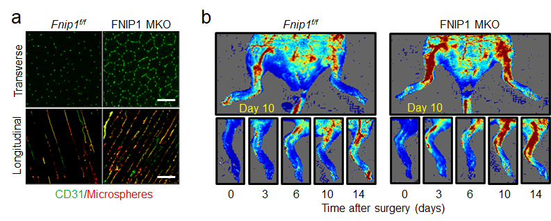 图1. 肌纤维FNIP1调控骨骼肌血管稳态与功能性血管再生。