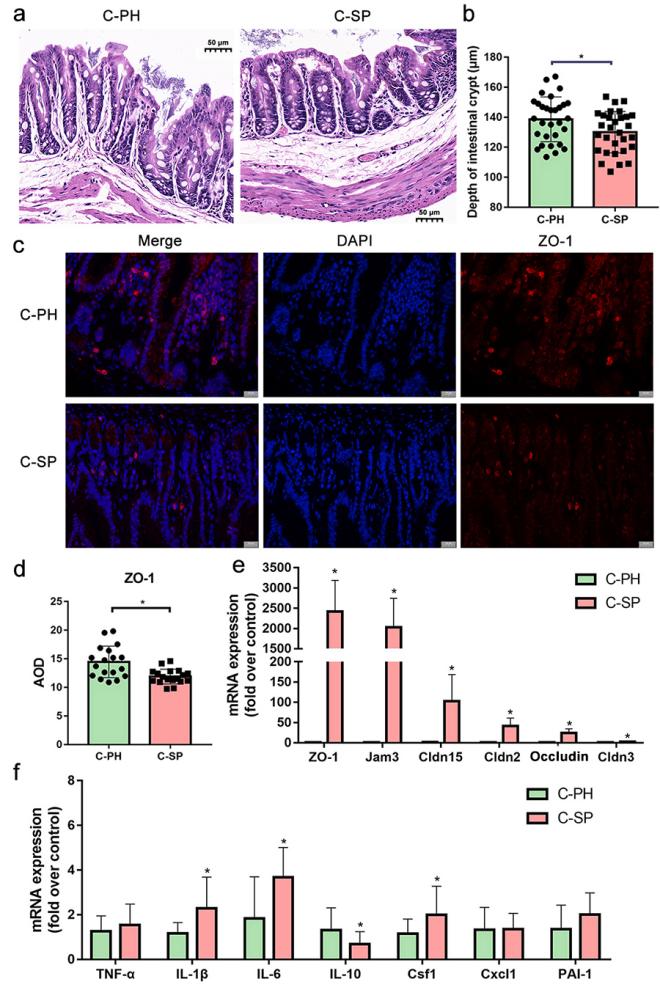 图2牙周炎患者唾液菌群进入小鼠肠道后,小鼠肠黏膜屏障破坏