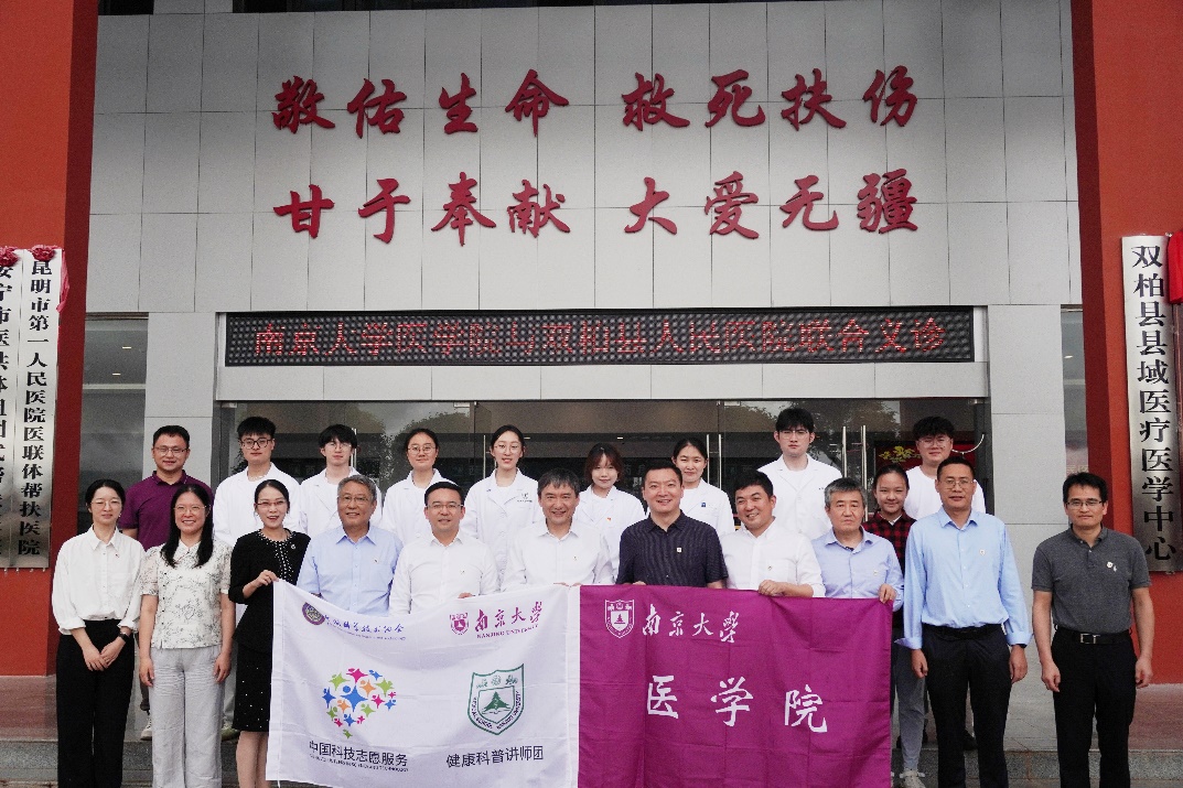 帮扶期间,由17av 附属鼓楼医院副院长周敏、疼痛科主任陶高见、运动医学与成人重建外科副主任徐志宏、男科主任赵晓智、血液内科许佩佩、肿瘤科陈晓彤,附属金陵医院(东部战区总医院)皮肤科副主任孔庆涛,附属口腔医院口腔颌面头颈肿瘤外科主任王志勇,附属泰康仙林鼓楼医院副院长柏峰等组成的专家团队,在双柏县人民医院开展了义诊和学术交流活动,并带领实践团同学们与当地医生一起参与了查房。