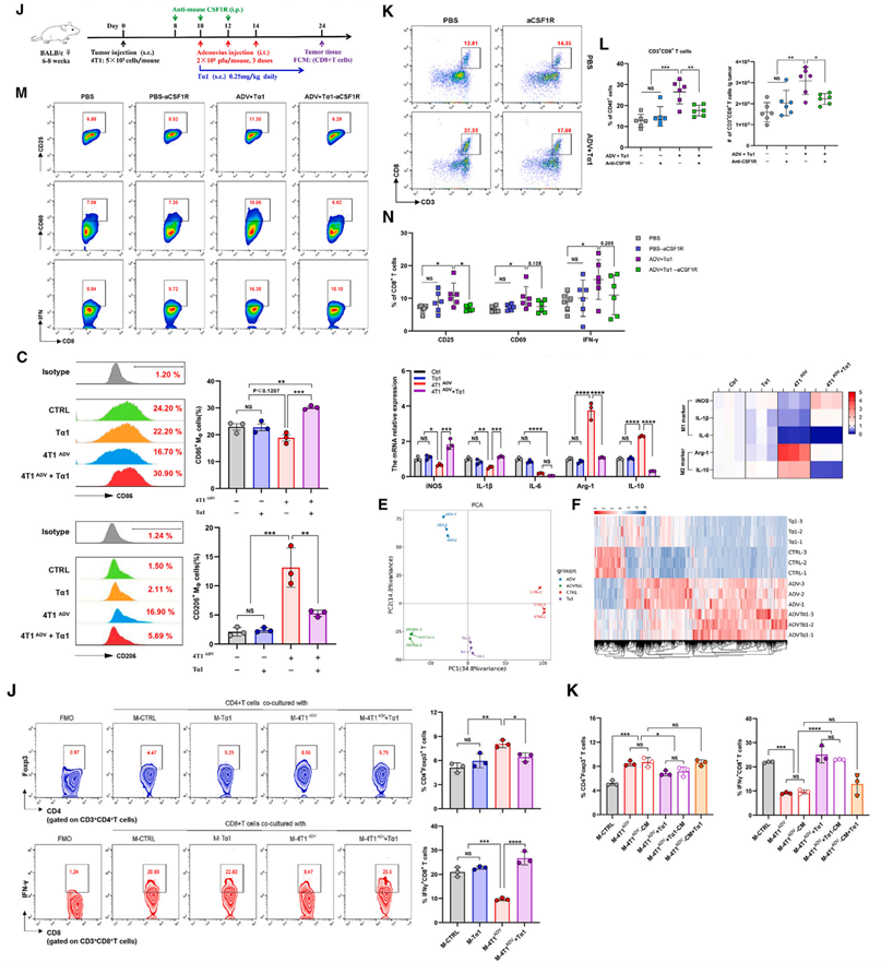 图1.Tα1逆转ADV治疗期间巨噬细胞的M2表型,降低TME中的Treg数量