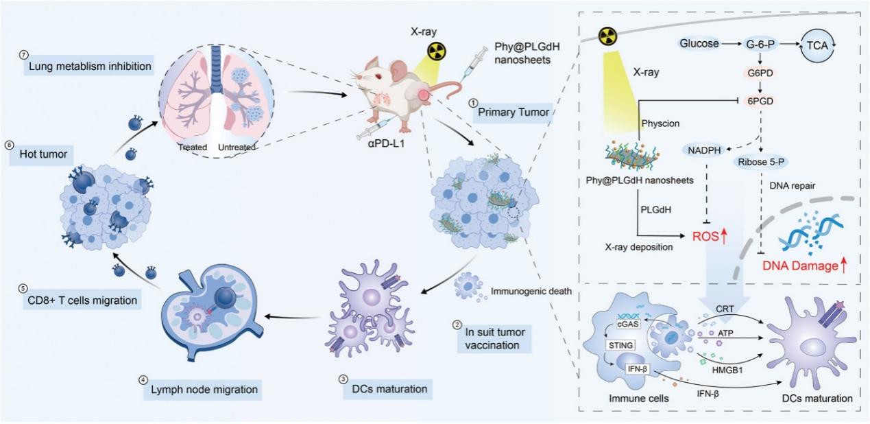 The study has demonstrated the combination of high-Z-sensitized RT and the intervention of the pentose phosphate pathway (PPP) can synergistically enhance the antitumor immune responses, potentially leading to the development of personalized cancer vaccines to promote tumor regression. This approach could potentially be used to treat a wide range of cancer types, including those that are currently resistant to conventional therapies, and represents a significant step forward in the development of novel cancer treatments (Fig 1, Advanced Materials, April 1, 2109726, 2022).
