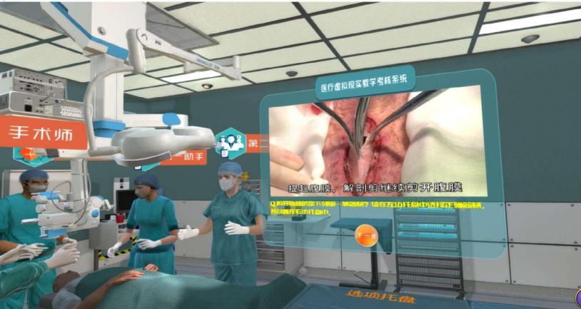 外科手术学虚拟仿真实验平台是一款基于沉浸式虚拟现实(VR)技术开发的创新型教学系统,聚焦于外科基础技能训练,特别是手术室无菌原则与手术器械认知等核心内容。平台通过高精度三维建模与真实手术室环境还原,构建高度仿真的无菌操作场景,使学习者“置身”于现代化手术室内,直观感受术前准备、器械传递、无菌区域管理等关键流程。在虚拟环境中,学生可自主识别、抓取并操作各类常用手术器械,如持针器、止血钳、剪刀、电刀等,系统实时提供名称标注、功能说明与操作提示,强化对器械形态、用途及使用规范的记忆与理解。该平台将传统课堂讲授转化为互动式、情境化的实践体验,有效提升教学的沉浸感与参与度,帮助医学生在安全可控的条件下掌握外科基本理论与操作要点,为后续临床实践打下坚实基础,是推动外科教学数字化转型的重要工具。